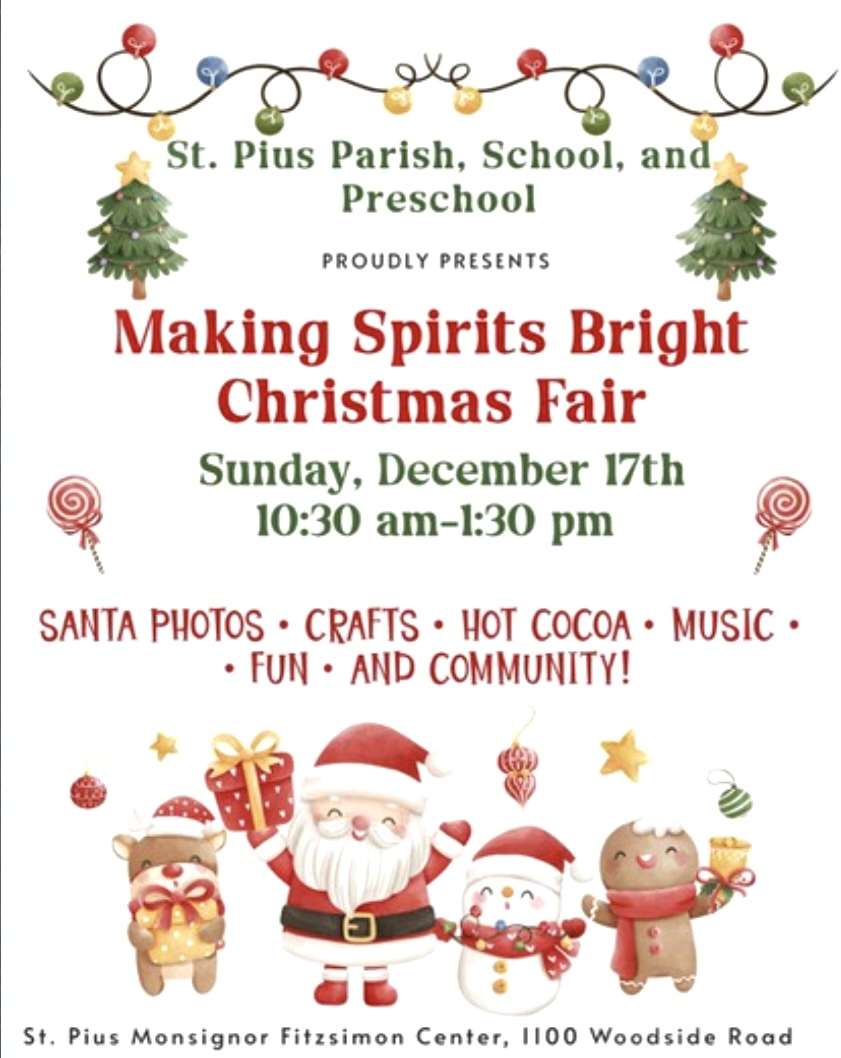 10:30 am to 1:30 pm Making Spirits Bright Christmas Fair in the Msgr. Fitzsimon Center / Gym