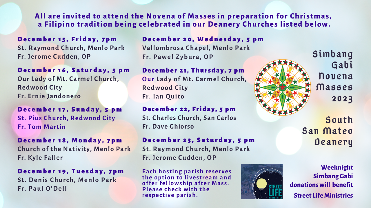 Friday, December 15 - Simbang Gabi Novena of Masses begins | All are invited to attend at the different Churches in the area for 9 evenings