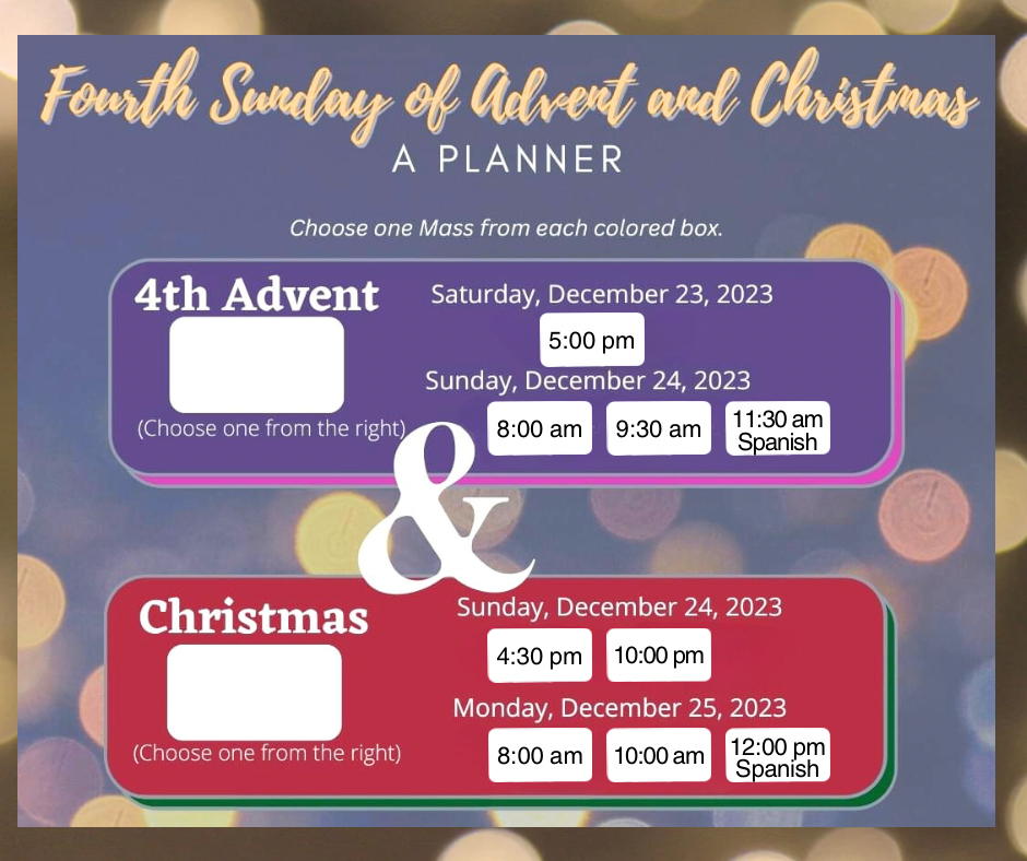 Sunday - Masses at 8:00 am, 9:30 am, 11:30 am (Spanish)